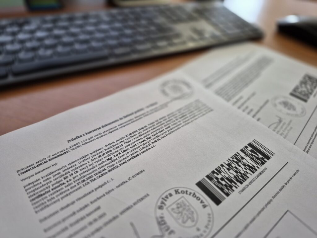 Document conversion is the process of converting a document from paper to electronic form, or vice versa, ensuring that the resulting document has the same legal effect as the original. This service is called authorized conversion and is carried out at public administration offices such as branches of the Czech Post, notary offices, and government offices within the Czech POINT system.